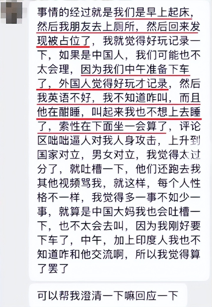 这一幕被拍下来发到网上后,10月29日当天就炸了锅。有网友替她着急:“凭票占座天经地义,为啥不吭声?”也有人理解她的顾虑:“出门在外怕麻烦,换我可能也这样。”